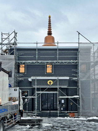 ■誠信寺 様(旭川市) 誠信寺さま、オリジナルの仏塔を製作させていただきました! FRP製なので腐食に強くさびません、表面はウレタンクリヤー 仕上げ なので自動車と同等の耐久性があります! デザイン、設置は誠信寺、旭川の工務店様で施工されました